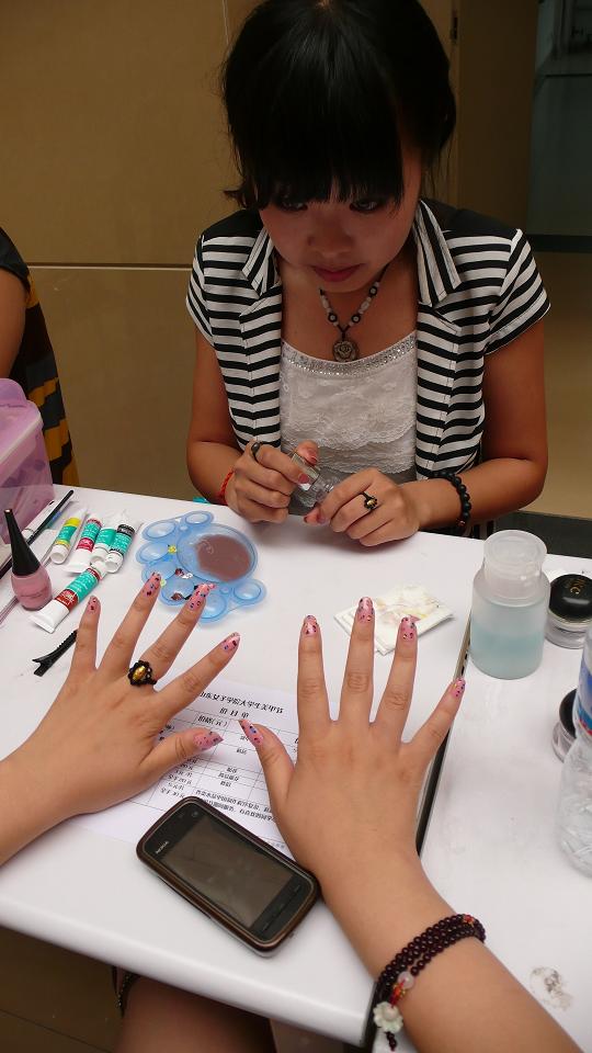 2012年6月7日下午,由我院人物形象设计专业和女性文化沙龙联合举办的“学生美甲作品展及女生美甲节”活动在合班楼一楼大厅举行。