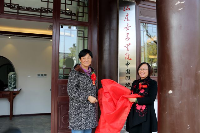 副校长王淑霞代表学校致辞,对各位领导和嘉宾的到来表示欢迎,对济南西城投资开发集团有限公司、北京明泽伟业投资有限公司、青岛大学校友会和社会各界予山东女子学院中国湿地画研究院暨初照美术馆建设的支持和帮助表示感谢,并对中国湿地画研究院揭牌和初照美术馆开馆表示祝贺。她表示,中国湿地画研究院揭牌暨初照美术馆开馆,这是学校以教学为中心,坚持人才兴校,加强校地丶校企深度合作,提高应用型人才培养水平,服务地方经济文化建设的又一成果,女子学院愿意与各有关单位一道进一步拓展合作的深度和广度,实现互利共赢。