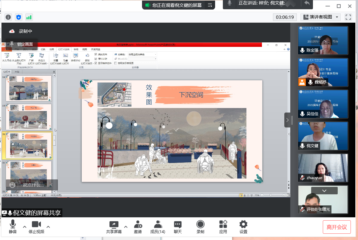在答辩过程中,学生从毕业设计选题背景、调研分析、设计内容、结论成果、创新点等方面进行阐述,答辩老师对汇报内容提出相关问题,同学们认真回答,并仔细听取了各位评委提出的宝贵意见。各组答辩老师以认真、严谨的态度,审阅毕业设计报告内容的规范性、设计作品的特点、调研分析、技术呈现等,考察了学生掌握专业知识的熟练程度,对毕业设计进行了精辟的讲解,并指出设计中的优点和不足。