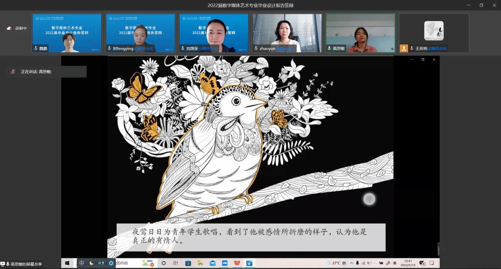 5月19日,我院2022届本科生毕业设计(论文)答辩工作在线上举行,参加答辩的毕业生共有259人,其中视觉传达设计专业61人、环境设计专业59人、服装与服饰设计专业30人、产品设计专业33人、数字媒体艺术专业76人。