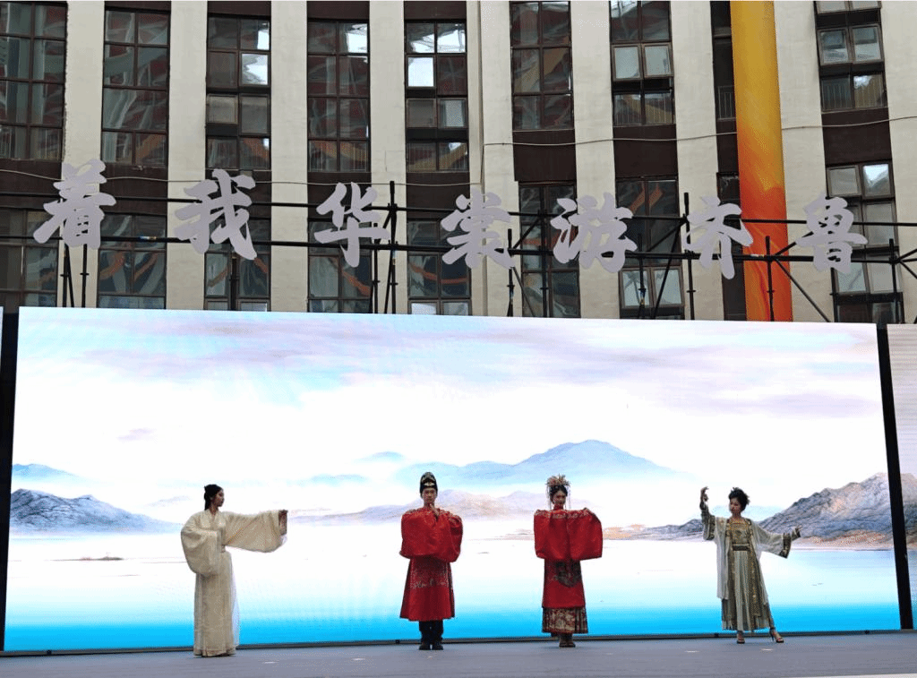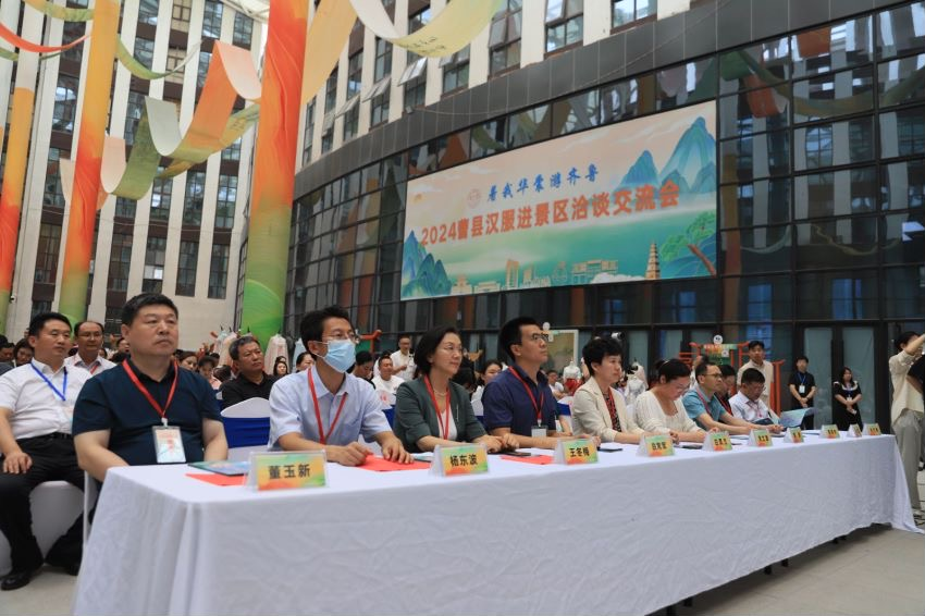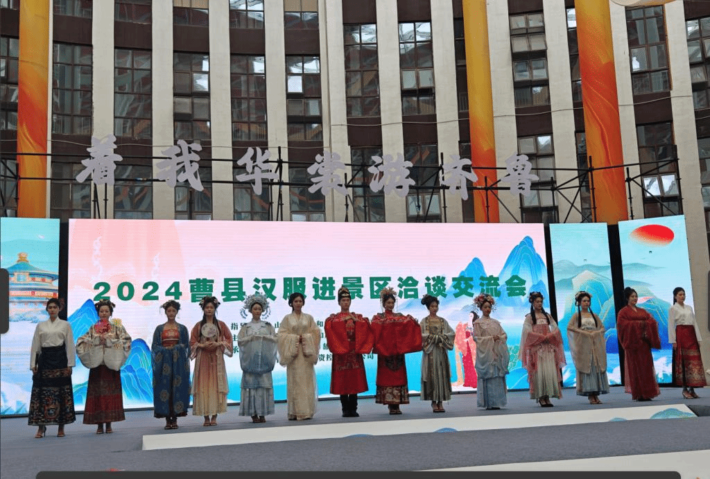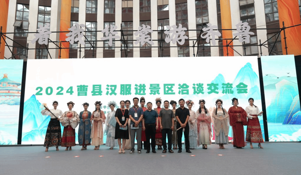 7月9日至10日,受菏泽曹县电子商务中心的邀请,艺术设计学院党委书记董玉新、党委副书记曲常军、副院长赵崇立带领服装与服饰设计专业负责人郭静、教研室主任霍建强及17名学生前往汉服之乡——菏泽曹县参加“着我华裳游齐鲁”2024曹县汉服进景区洽谈交流会。