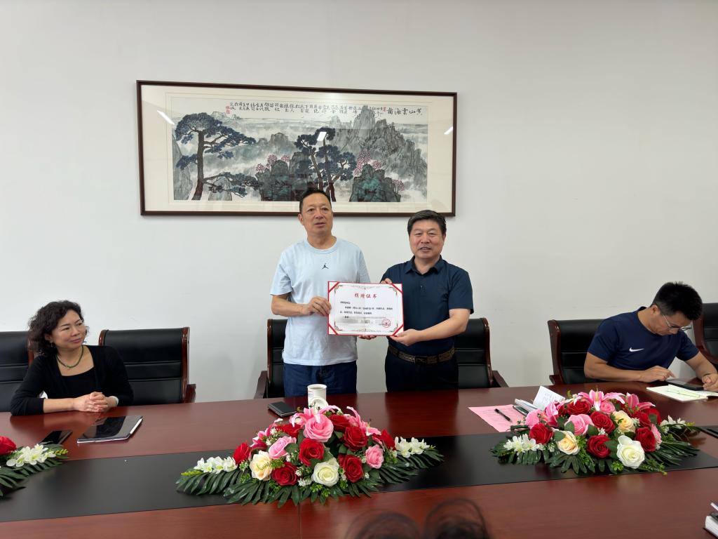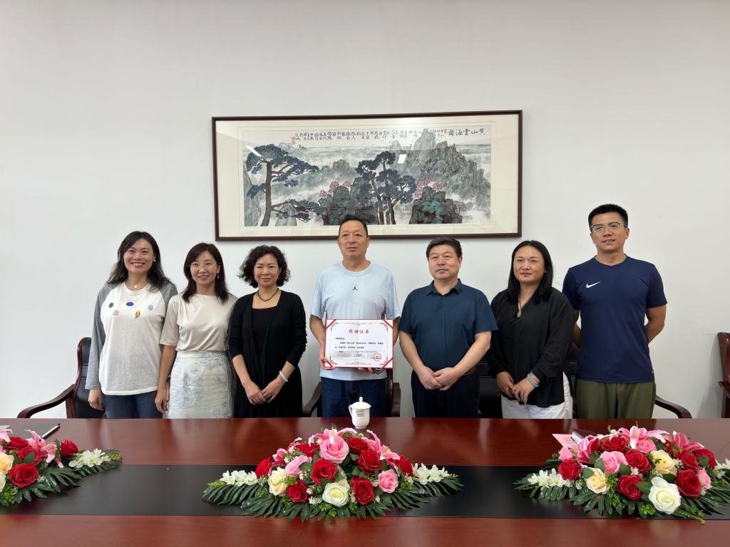 仪式最后,艺术设计学院党委书记董玉新为李曙光教授颁发捐赠证书,并合影留念。