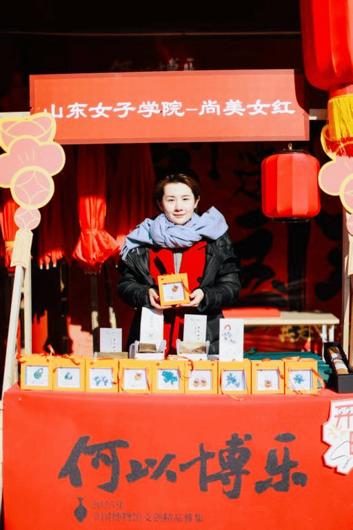 近日,“何以博乐”2025全国博物馆文创精品雅集在北京前门大街盛大开幕。山东女子学院艺术设计学院“尚美女红”部分手工艺品受邀参展,其精美绝伦的女红作品在雅集上大放异彩,吸引了众多游客驻足欣赏、购买。