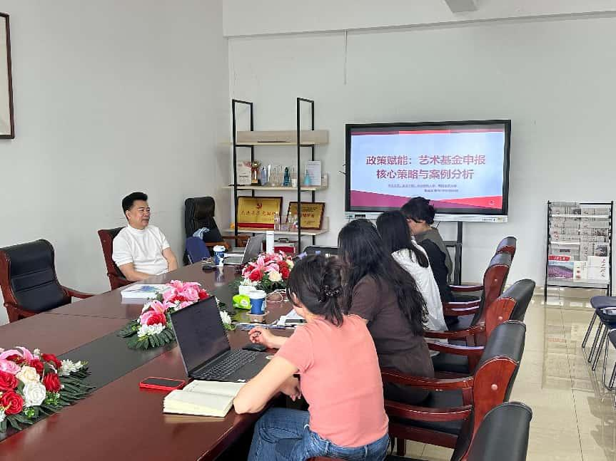 为提升国家艺术基金项目申报质量,推动学科建设与科研创新,艺术设计学院于5月28日举办“2025年度国家艺术基金项目申报专家指导会”,特邀青岛大学张成义教授担任主讲嘉宾。艺术设计学院领导、骨干教师及项目申报团队参与会议。