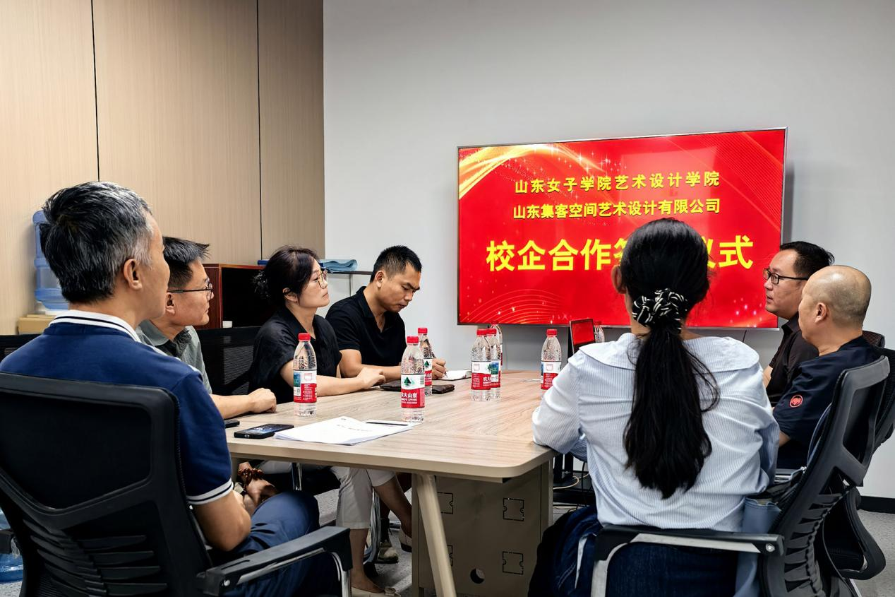 为深化产教融合,推进数智化教学改革,8月9日,艺术设计学院党委副书记叶小华、副院长赵崇立一行赴山东集客空间艺术设计有限公司开展数智化教学平台建设及访企拓岗活动,受到公司总经理马强的热情接待。