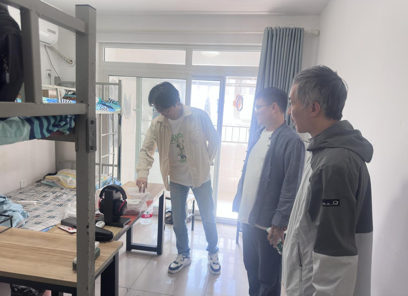 最后,学院一行实地查看了学生宿舍环境,了解学生住宿生活情况,不时询问学生们在学习和生活中的情况,让同学们感受到了学院的关怀。