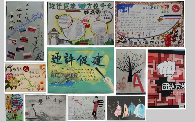 此次展板比赛以班级为单位,为迎接教育部对我校本科教学合格评估,使学生在深入了解评估工作的基础上积极参与进来,各班充分发挥自身专业优势,运用画笔表达对评估工作的认识和理解。根据专业老师和学生评委的共同打分,最终15级环境设计二班的展板以紧扣主题的设计和对迎评工作的深刻认识荣获一等奖,15级装潢艺术设计和环境设计三班获得二等奖,15级视觉传达三班和环境设计一班获得三等奖。
