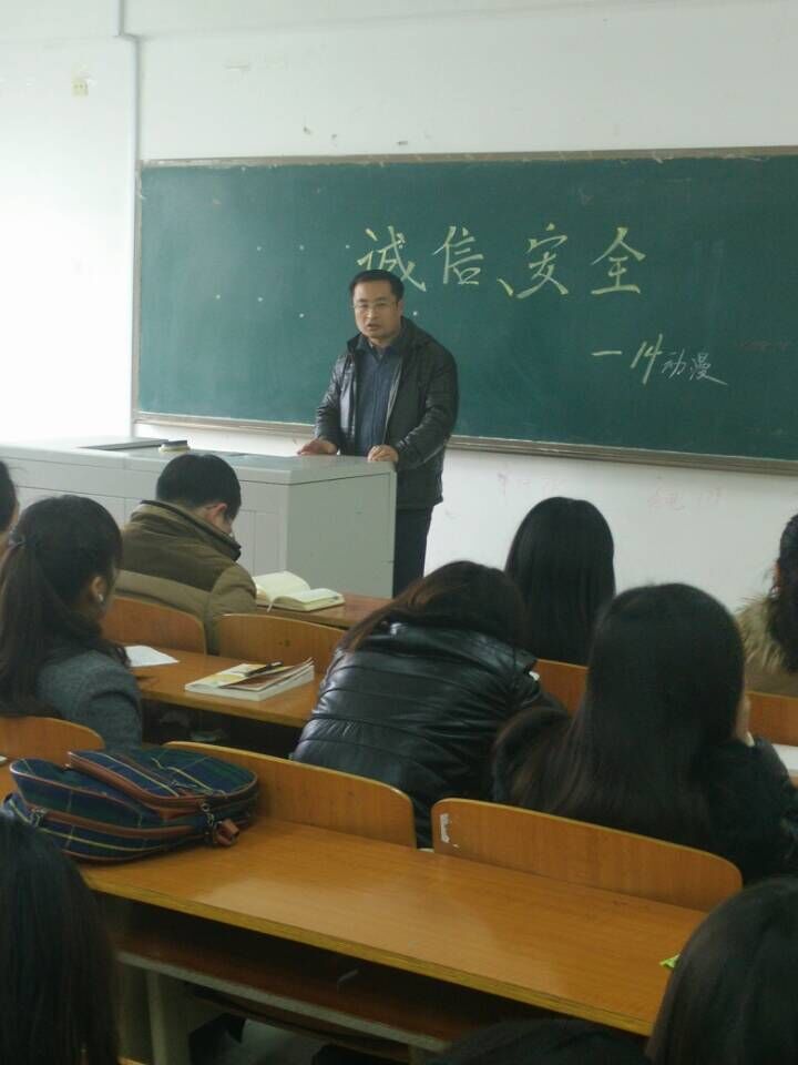 为切实增强学生的安全防范意识和避险能力,保障学生安全,同时教育学生诚信考试,拒绝作弊,14级动漫设计与制作专业于2015年1月14日下午在普教楼410举行了诚信、安全主题班会。班会以诚信考试、学校安全教育为主题,对学生进行了思想教育。班会由班主任温静老师主持,带班处级领导后勤处于学江处长、保卫处武凯处长也参加了此次班会。