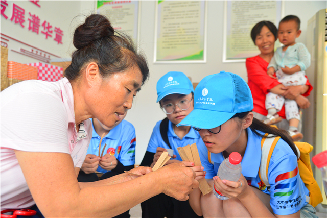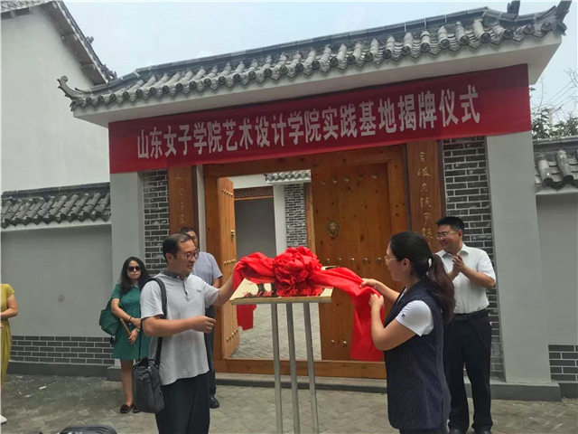 同时,为积极探索高校智力帮扶乡村振兴战略的校地合作、研学合作新模式新思路,结合学校人才培养目标,艺术设计学院依托与济南传统手工艺协会的良好合作关系,7月11日上午,艺术设计学院党总支书记于学江邀请济南传统手工艺协会会长杨崇华、秘书长李洁等一行人来到北宋镇佟家村,与北宋镇党委副书记、镇长陈善泽、利津县文化和旅游局党组书记、局长赵炳兰等有关部门领导共同参加“山东女子学院艺术设计学院实践基地揭牌仪式”,随后与当地传统手工艺从业者进行交流,探讨草柳编传统手工艺发展的方向和思路。通过建立与基地间的稳定的长期服务与合作关系,在加强社会实践基地建设的基础上,培育学生创新创业基地。
