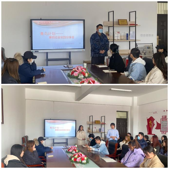 用脚步丈量责任,用实干书写担当,走进社会,奉献家乡。艺术设计学院学子积极在实践中锻炼自己,服务家乡发展,展现当代大学生青春力量。青鸟计划—寒假社会实践分享会上,产品设计2201班的徐昊表示:我的寒假实践主要是完成对农房的面积测量进行摸底、农村房屋信息录入等工作,“青鸟实践”让自己学到了以往在学校、课本上不曾接触的知识和经历,从事该工作虽然时间较短,但深感基层是一片广阔的天地,基层大有可为,希望每位同学都能为自己的家乡做点力所能及的事。数字媒体艺术20本的王晨力表示:“青鸟计划”小程序,线上求职,高效便捷,各团干部可以利用宣讲会、主题班会、交流会等,深入开展“青鸟计划.技能提升”培训,将“青鸟计划”充分利用起来,当成服务同学的有力抓手。