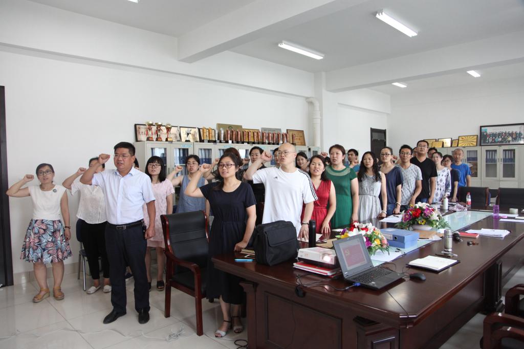 6月29日,在博雅楼501会议室,艺术学院党总支召开全体党员大会,组织全体党员重温入党誓词纪念建党96周年,扎实推进“两学一做”学习教育常态化制度化深入开展。