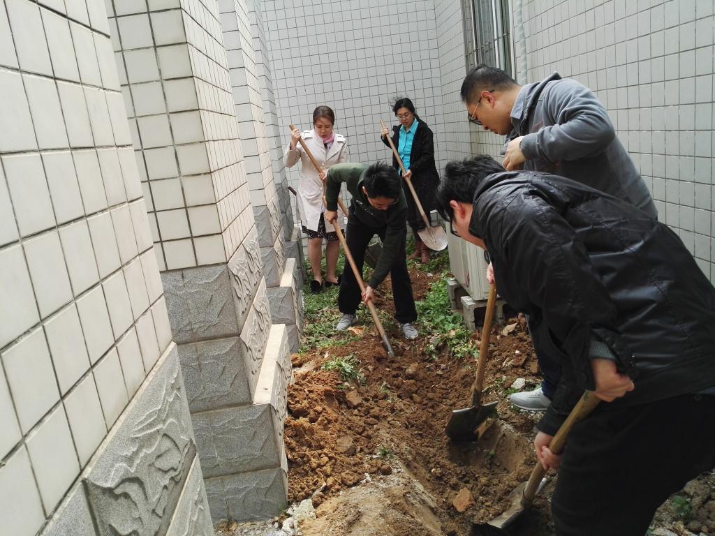 参加活动的党员分工协作,有的测量树坑的位置,有的挖土,有的栽树,整个活动现场一片忙碌。党员们一边植树,一边畅谈将来绿树成林的景象,为自己用劳动和汗水对建设美丽校园做出的一份贡献感到自豪和喜悦。