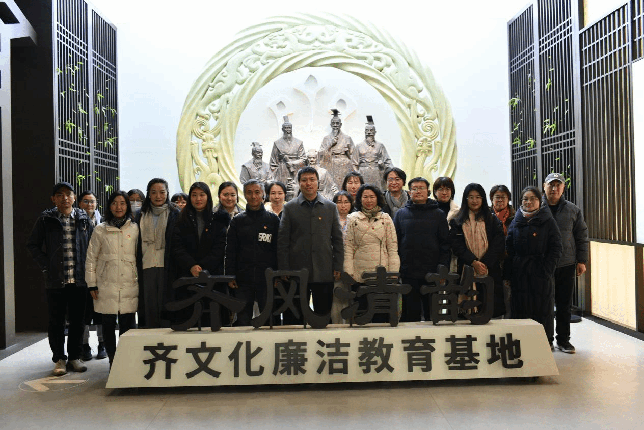 活动首站来到齐文化廉洁教育基地。作为山东省反腐倡廉教育基地、省委党校齐文化教研基地,这里是开展廉洁与党性教育的重要平台。在讲解员的细致引导下,党员们系统了解了“廉为政本、勤俭兴业”等传统廉洁思想的历史脉络与时代价值。大量鲜活的典型案例,特别是与教育、科研领域相关的警示故事,引发了大家对于恪守学术规范、筑牢思想防线的深入思考。