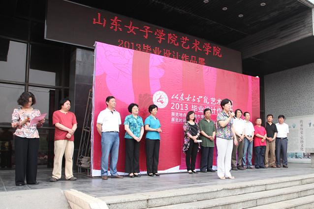 2013年5月25日上午,山东女子学院艺术学院2013届毕业生设计作品展在济南市博物馆开幕。参加开幕式的有山东女子学院党委书记孙秀丽,副院长王淑霞、副院长宋兆静、纪委书记汪琦、副院长贺兴利,同时邀请了山东建筑大学、山东师范大学、曲阜师范大学、山东工艺美术学院、济南大学、齐鲁师范学院、山东青年政治学院等单位的专家、领导。开幕式由艺术学院党总支书记、院长于淑忠主持,山东女子学院副院长王淑霞致辞,山东建筑大学艺术学院原党总支书记周长积先生代表来宾致辞,2013届毕业生顾璐代表毕业生发言,最后,山东女子学院党委书记孙秀丽宣布2013毕业生设计作品展开幕。400多名艺术设计专业的毕业生亮出了自己的作品。