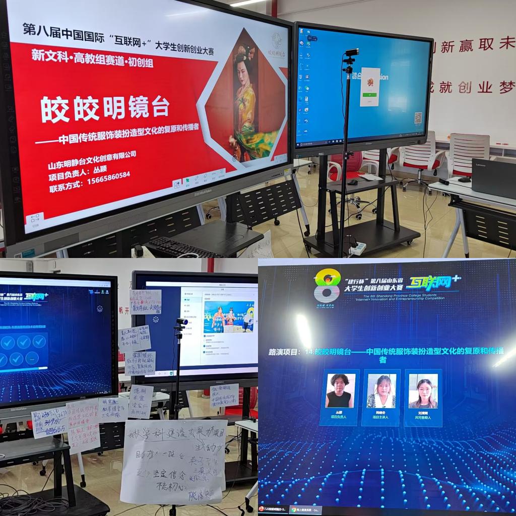 金奖作品《皎皎明镜台—中国传统服饰装扮造型文化的复原和传播者》是卢婧妍老师指导的皎皎明镜台项目组多年积累的成果,项目组成立于2019年,主要研究方向为:中国传统服饰装扮造型,其文化使命是:做一面明镜,用专业知识和严谨的态度照出中国传统服饰装扮造型真实的样子,做文化的复原和传播者。小组成员经过3年的磨合与学习,在传统文化领域中不断汲取新知识,逐步成长,曾获得全国大学生创新创业大赛省级立项1项,国家级立项一项,多次在省内创新创业方面的赛事中荣获佳绩,并通过产学研反哺学科建设,在多个领域实现了专创融合。