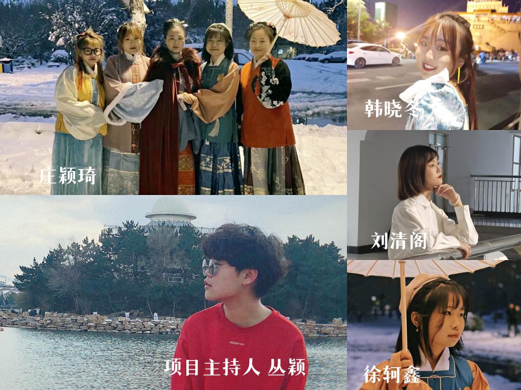 团队核心成员:韩晓冬(人物形象设计)、刘清阁(人物形象设计)、徐轲鑫(文化产业管理)、庄颖琦(人物形象设计)。