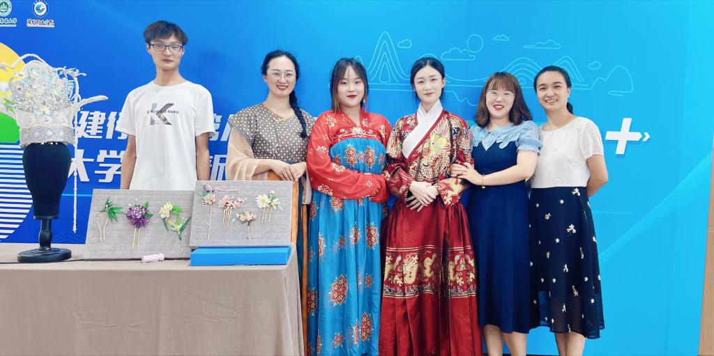 在学院领导和老师的全力支持和帮助下,我院参赛作品喜获1金1银1铜的好成绩,其中《皎皎明镜台—中国传统服饰装扮造型文化的复原和传播者》获主赛道金奖,《英联教育—孤独症美育疗愈的开拓者》获红旅赛道银奖,作品《草木山川—植物染纺织服饰品品牌开发》获主赛道铜奖。