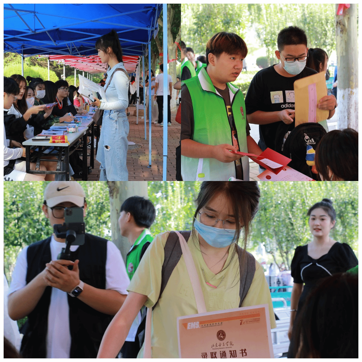 从车站接应到校园,“欢迎新生”的横幅随处可见,指向牌从校门口延伸到报到处,志愿者们在路旁指引新生到报到处。迎新的工作在阳光的照耀下格外耀眼,报到处的人流渐渐密集起来,志愿者们耐心地为前来报到的新同学解答疑惑,采集信息、登记注册、发放资料……在完成所有的报到流程之后新生可以在选择签名留言墙进行合影留念这也将会是属于他们的独家记忆。
