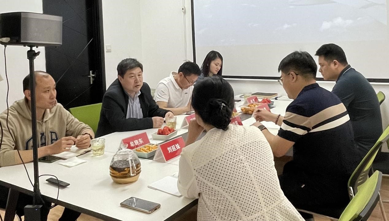 骏程企划总经理张炳泉介绍了公司业务的相关情况和行业发展前景,以及党建项目的承接和开展情况。董玉新表示对骏程企划长期以来对学院发展的支持表示感谢,作为校友单位,为学院的校友会做了大量工作,为毕业生提供了良好的实习就业机会,为专业实践教学提供条件。学院党委高度重视党建与业务深度融合,积极推进课程思政建设,深入探索“思政+设计”融入机制,使党建工作更接地气,形成良好的育人氛围。