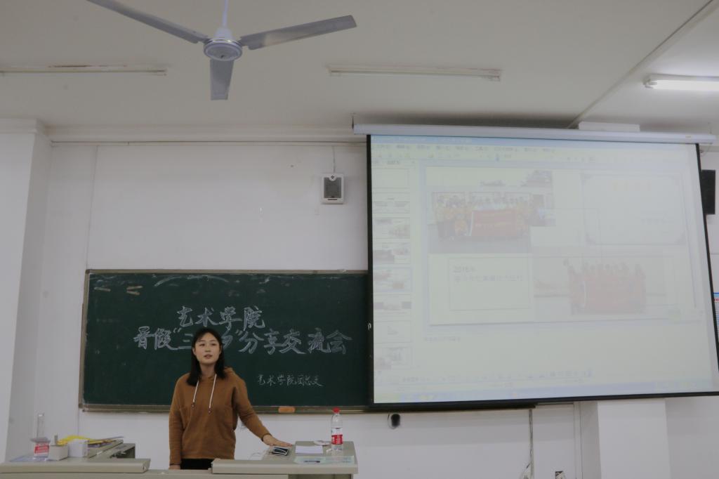 11月2日下午,艺术学院团总支在博文楼208教室召开了暑期“三下乡”社会实践活动分享交流会。我院“美丽乡村建设”志愿服务队全体队员与17级新生300余名学生参加了此次交流会。