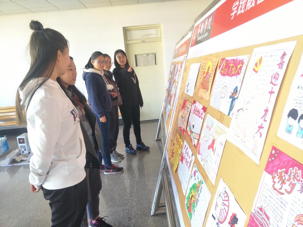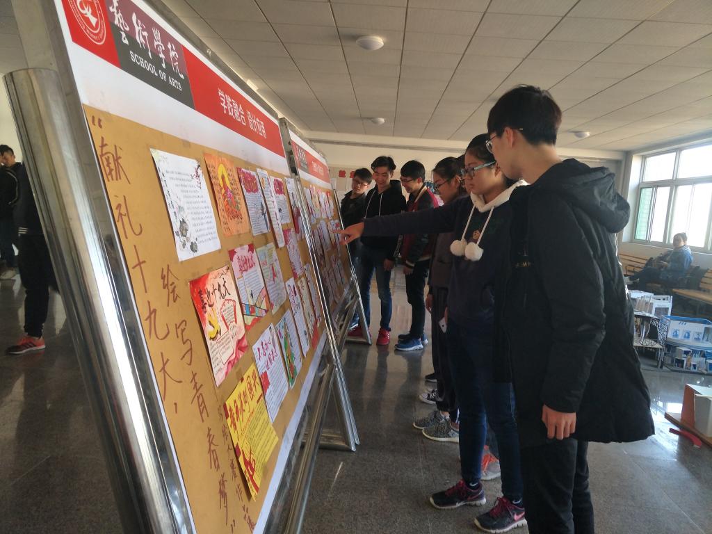 11月6日,由艺术学院团总支举办的“献礼十九大,绘写青春梦”写绘大赛作品展在博学楼五楼大厅进行展出,作品展受到师生的广泛关注。
