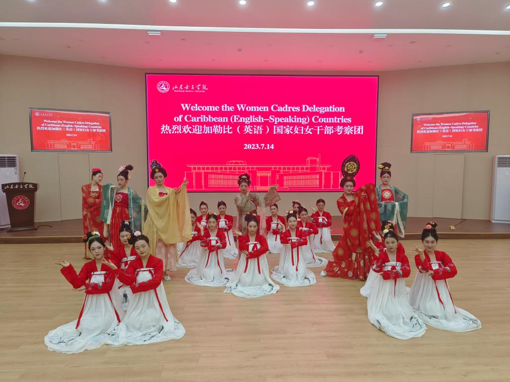 7月14日下午,加勒比(英语)国家访问团一行23人,在中联部、全国妇联、省外办、省妇联的陪同下来学校考察访问。学校党委书记吕晓黎、副校长刘恩允接见了访问团并陪同考察交流。艺术设计学院副院长(主持工作)赵月带领考察团参观了我院的中国传统女红艺术作品展。