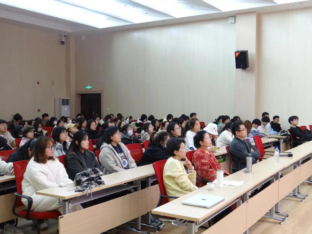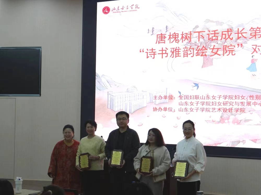 坚持以美育人、以文化人,提高学生审美和人文素养,坚持立德树人根本任务,健康向上丰富的校园文化活动对于提高学生的人文道德素养,拓宽学生的视野,培养跨世纪人才具有深远意义。妇女研究与发展中心联合艺术设计学院,于2023年11月25日下午举办了“唐槐树下话成长之诗书雅韵绘女院”对话活动,本次活动特别邀请山东工艺美术学院教授杜明星。活动由艺术设计学院赵月副院长主持,妇研中心林琳教授、艺术设计学院副教授王丽丽、艺术设计人物形象设计教研室主任卢婧妍老师和150多名学生参加了此次活动。