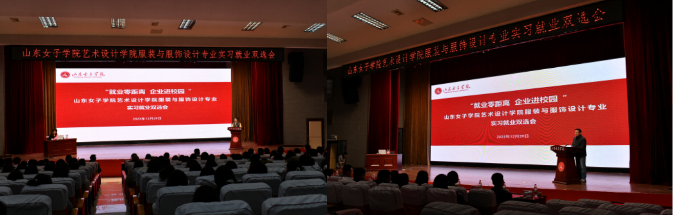 2023年11月29日,由艺术设计学院主办,服装与服饰设计专业承办的山东女子学院艺术设计学院服装与服饰设计专业实习就业双选会在图书馆二楼报告厅举行。