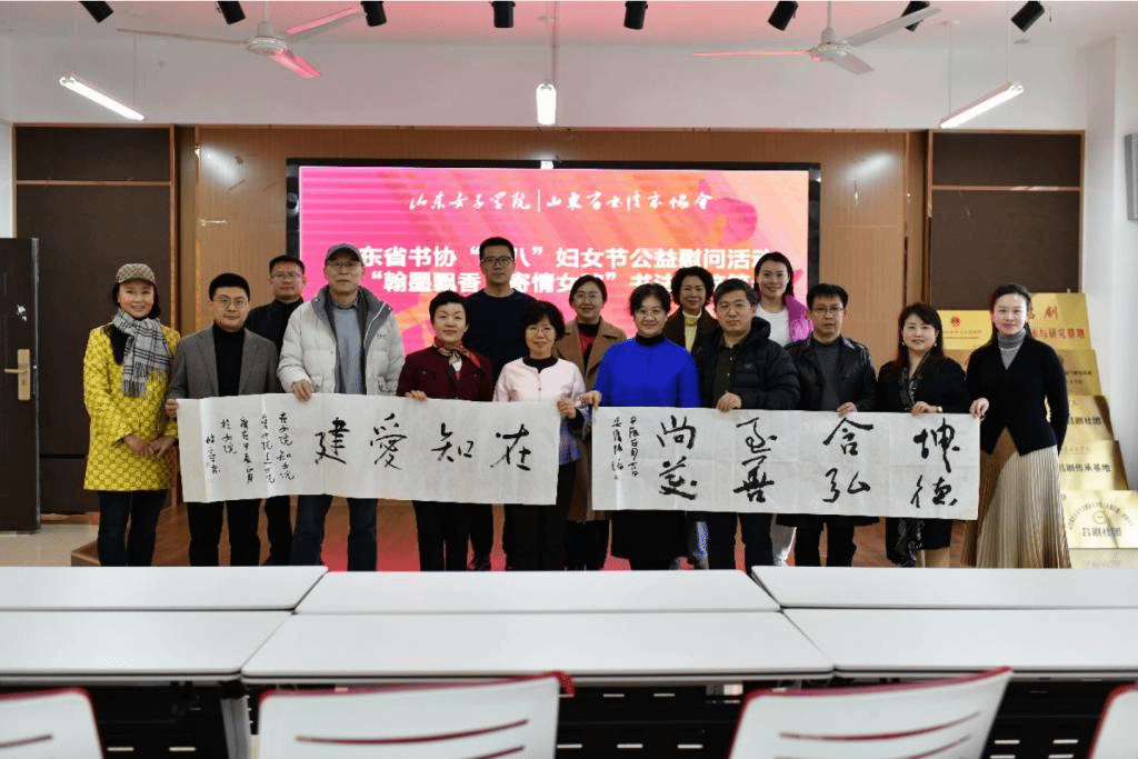 翰墨飘香,寄情女院。3月7日下午,艺术设计学院邀请省书协庆祝“三八”国际妇女节书法交流笔会活动在求真楼3楼举行。省书协副主席、山东艺术学院教授陈靖,省书协副主席、济南大学文化中心主任于剑波,省书协主席团委员兼秘书长郝晓明,省书协主席团委员、山东工艺美术学院副教授杨国栋,省书协副秘书长窦改林,省书协副秘书长、省青年书协顾问管恩昱,省书协副秘书长、山东财经大学艺术学院副教授兼院长助理高远,及学院师生代表共同参加此次书法交流笔会活动。