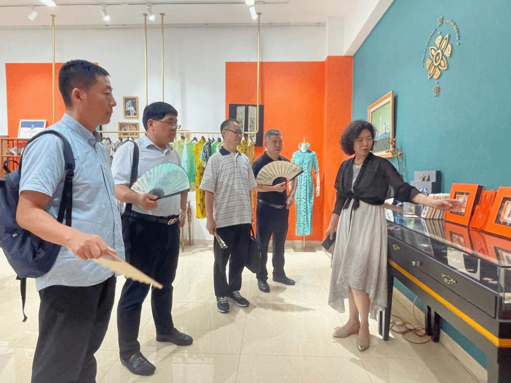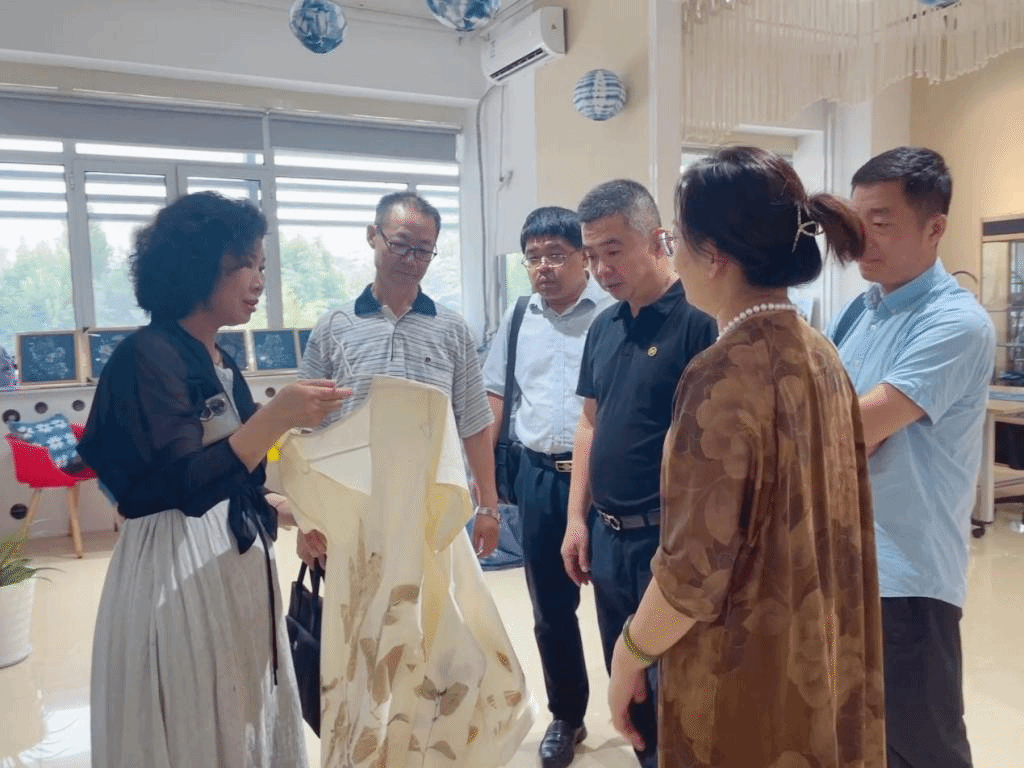 山东省行为科学学会一行首先参观了我院的扎染工作室、旗袍工作室、明镜台古风工作室,参观一行对我院特色鲜明的育人模式、出色的产学实践能力、丰硕的创新创业成果给予了高度的评价和赞赏。