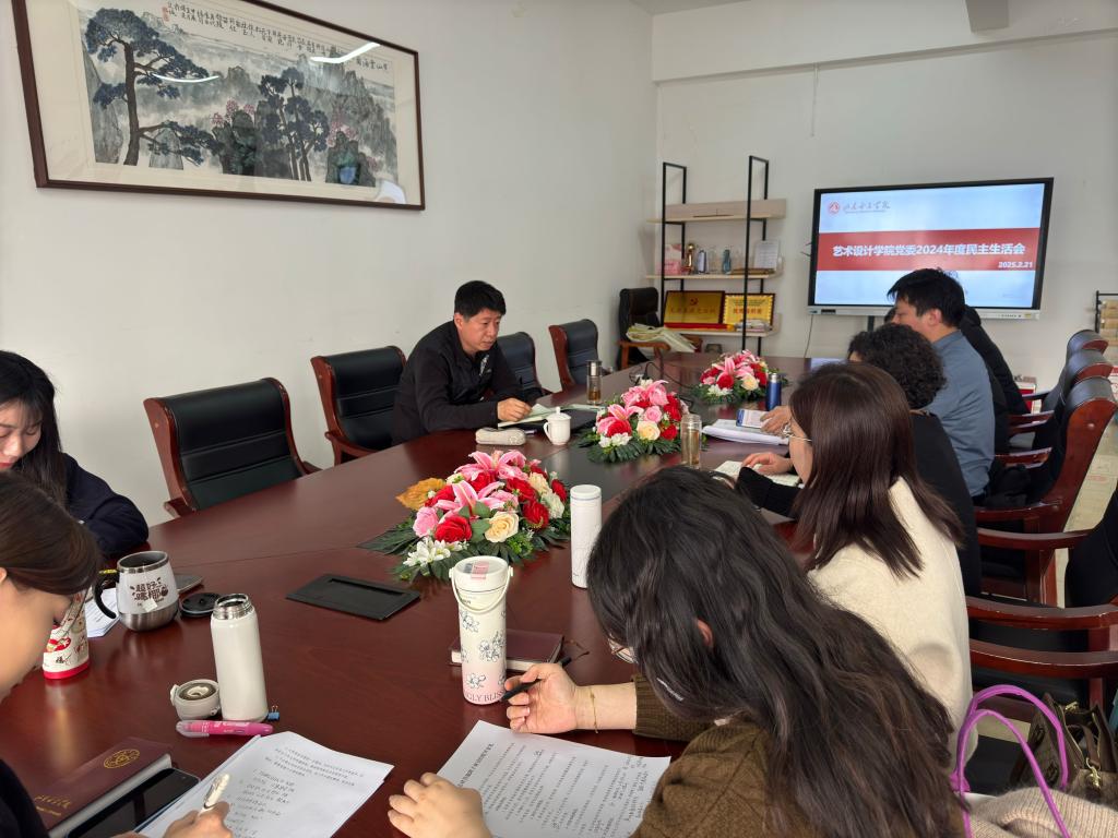 2月21日上午,艺术设计学院党委领导班子在求真楼303会议室召开2024年度民主生活会。学校党委委员、宣传部部长王鲁出席会议并作点评讲话。学院党委书记颜涛主持会议,学院党委领导班子成员参加会议,副院长赵崇立列席会议。